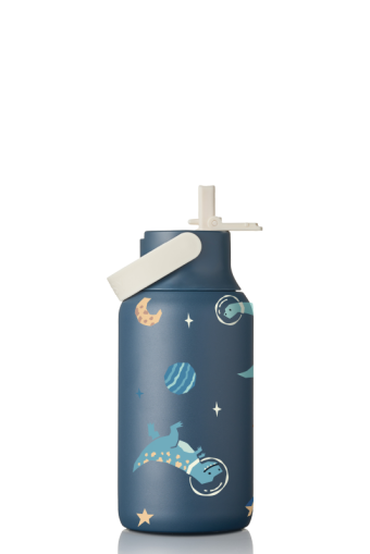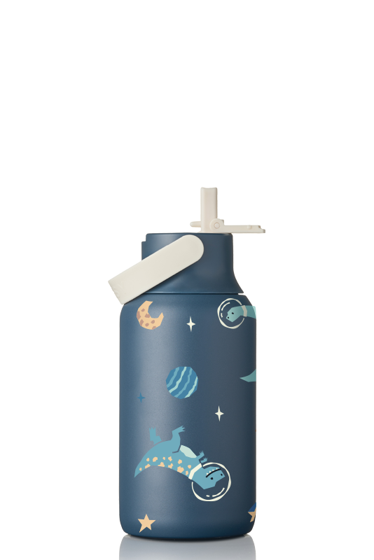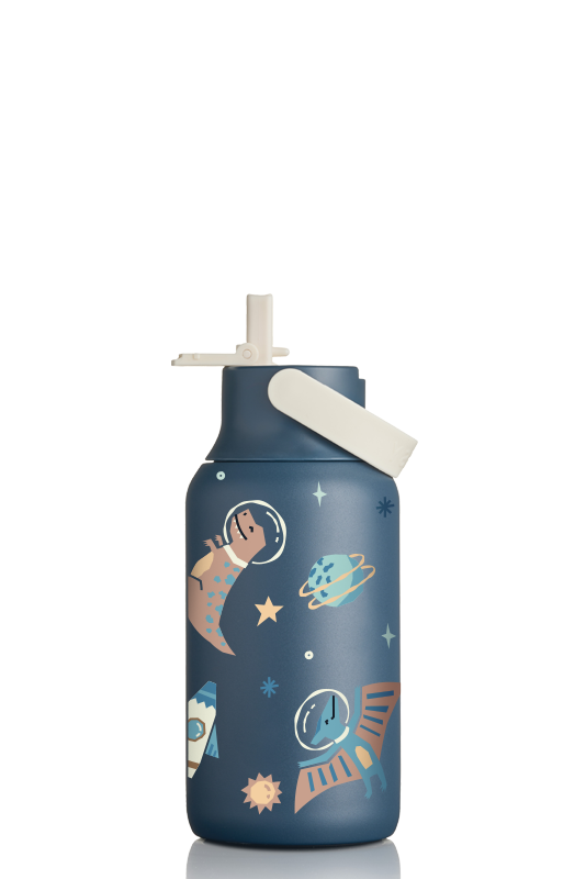 • Zestaw zawiera: 1x butelka termiczna MOSHI z ceramicznym wnętrzem 350 ml - Ink Blue z nadrukiem dziecięcym w dinozaury w kosmosie + 1x zakrętka sportowa MOSHI Ink Blue/Sand