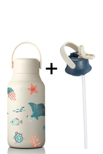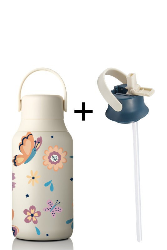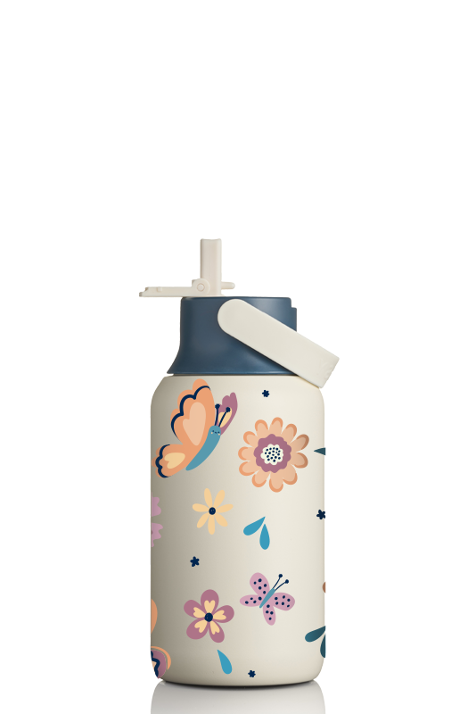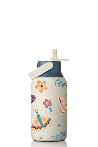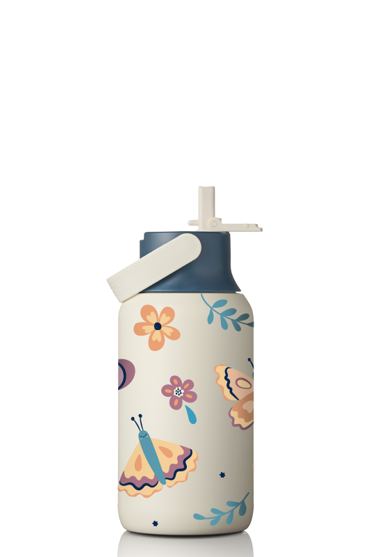 • Zestaw zawiera: 1x butelka termiczna MOSHI z ceramicznym wnętrzem 350 ml - Sand z nadrukiem dziecięcym w motyle i kwiaty + 1x zakrętka sportowa MOSHI Ink Blue/Sand