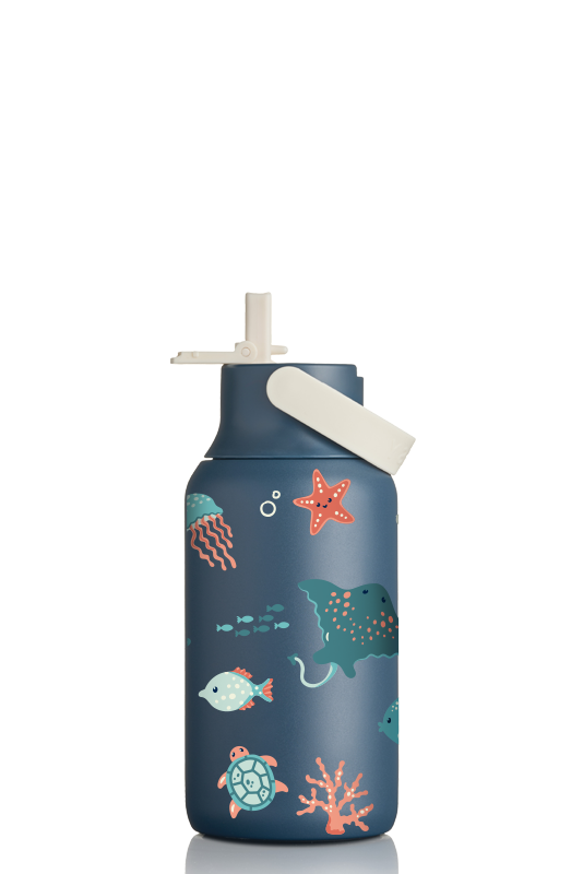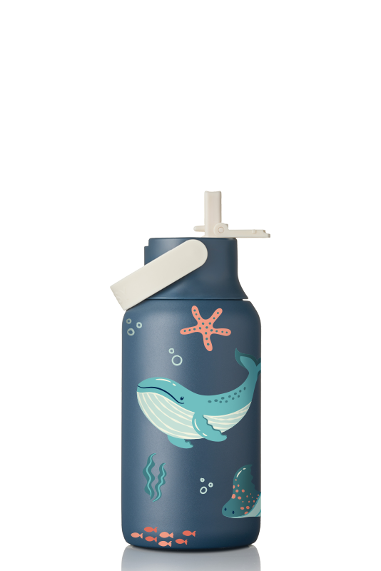 • Zestaw zawiera: 1x butelka termiczna MOSHI z ceramicznym wnętrzem 350 ml - Ink Blue z nadrukiem dziecięcym w zwierzęta morskie + 1x zakrętka sportowa MOSHI Ink Blue/Sand