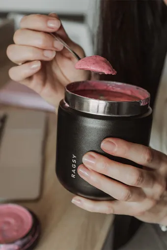 Zaawansowana technologia Ragsy Thermo zapewnia wysoką termikę. Termos na jedzenie Ragsy pozwoli Ci zaserwować gościom lody z ulubionej kawiarni w domu lub po prostu uratuję Cię w ciągu dnia pracy gorącą zupą. Konstrukcja zapewnia utrzymanie temperatury ciepłych posiłków przez 6 godzin, a zimnych przez 10 godzin. Ciesz się odpowiednią temperaturą jedzenia, bawiąc się zawartością Twojego lunchu.